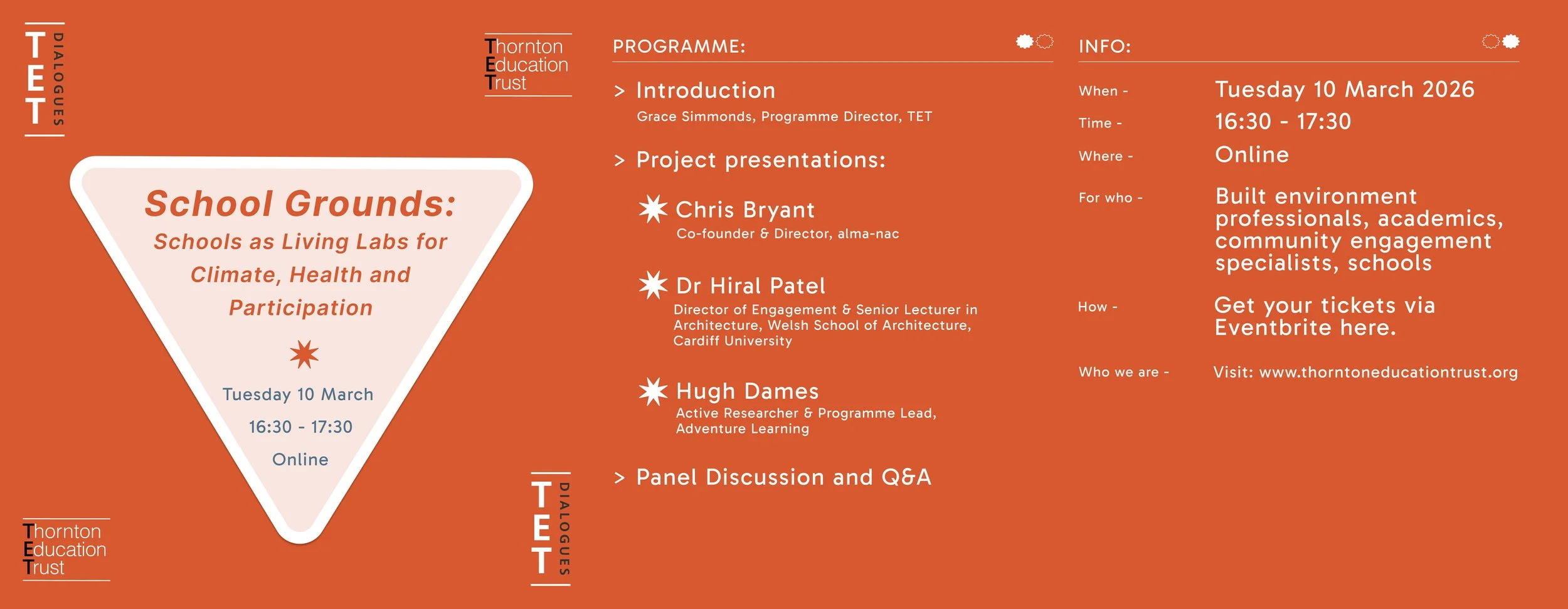 We launched the Thornton Education Trust (TET) on 30 March 2021 with the ‘Inspiring Future Generations’ webinar, attended by over 140 people, with panelists: